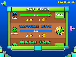 Los pack de mapas son diferentes niveles que se pueden completar para ganar monedas secretas (Secrets coins) y estrellas que sirven para desbloquear iconos, naves, entre otros. Estos están divididos de acuerdo a su dificultad y sus características, por ejemplo: El "Fast Pack" es un paquete que contiene los tres primeros niveles del juego pero modificados para ir el triple de rápido, el "Normal Pack" es un paquete que contiene niveles fáciles y normales (todos los niveles de todos los paquetes son online). Estos "Map Packs" solo se pueden jugar con internet y se deberán descargar.